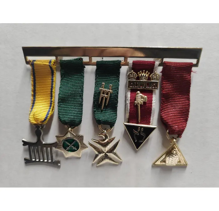 Allied Masonic Degrees Miniature 5 jewels set on a bar are of high quality