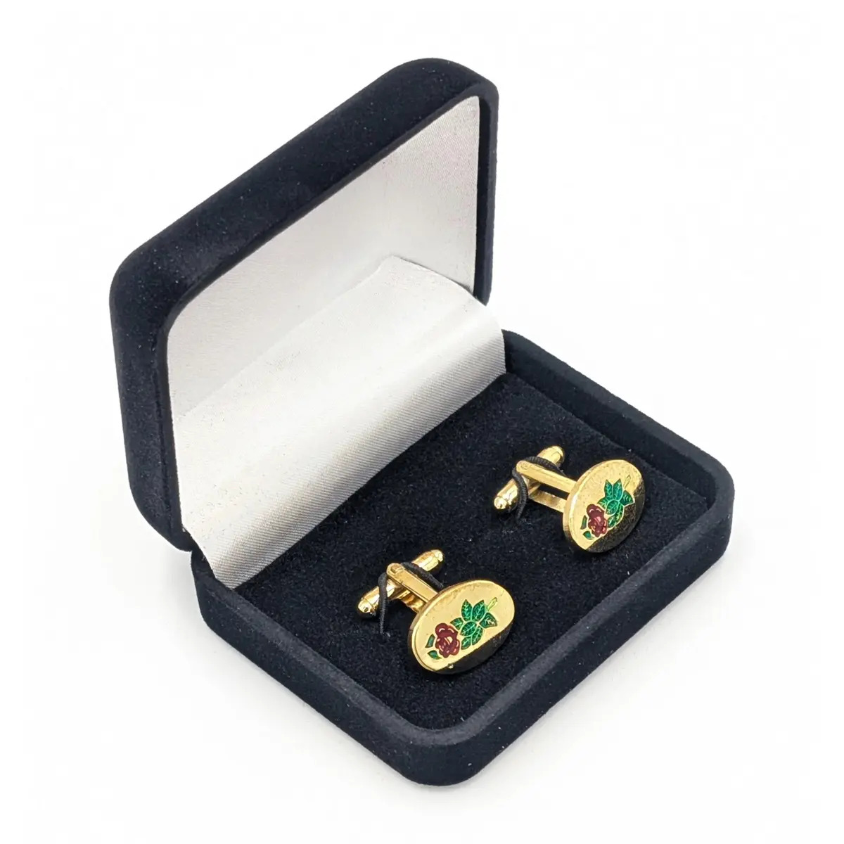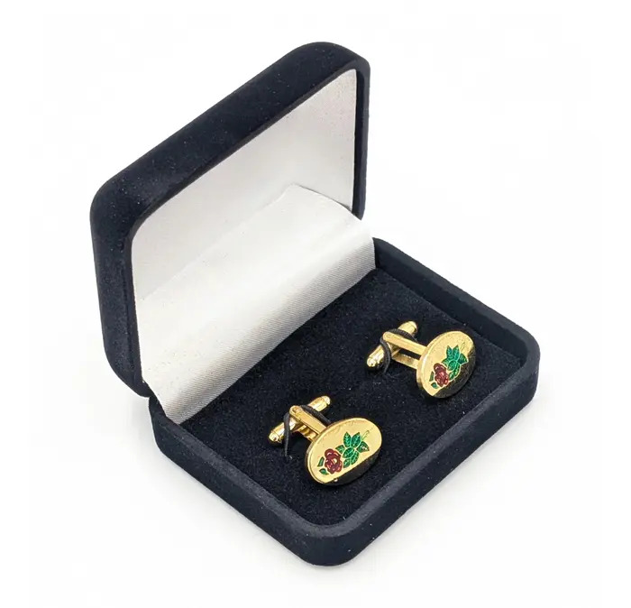 These are beautiful crafted Rose Croix Cufflinks presented in a classic black velvet presentation box, designed to protect and showcase your cufflinks. The deep black velvet exterior offers a refined, timeless look, while the soft interior lining cradles the cufflinks securely.