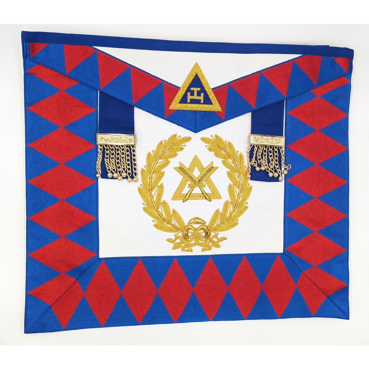 This is a Royal Arch Grand Supreme Apron for the rank of Grand Scribe Nehemiah.