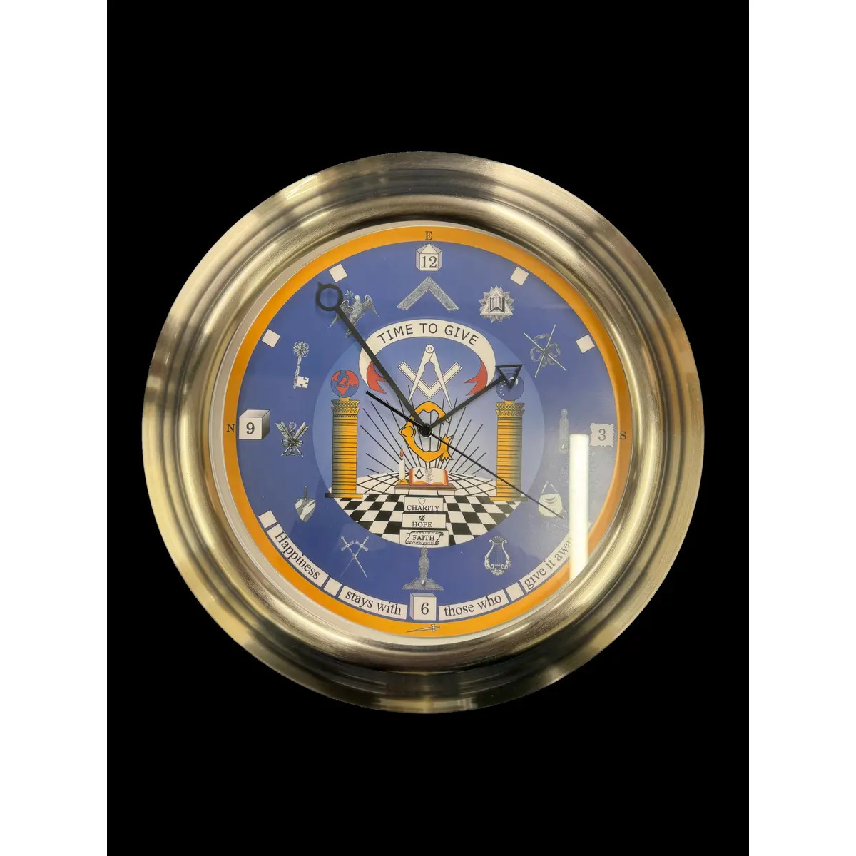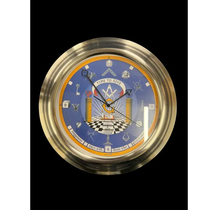These beautifully designed Masonic wall clocks are available in limited quantities. Decorated with Masonic symbols representing the different officers of the lodge, and those related to the 1st Degree Tracing Board, with custom hands in the form of a circle and a triangle.
