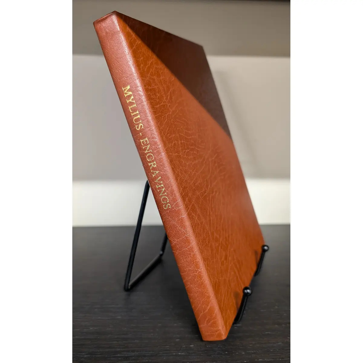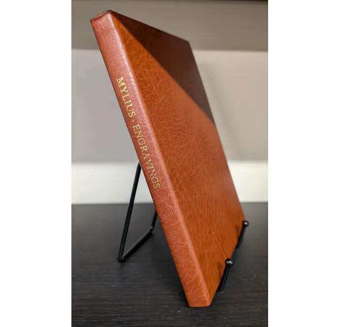 The edition described is a early issue, printed on bright white paper with brown endpapers and a relatively higher limitation number. The title "Mylius Engravings" is stamped along the spine. A notable feature of this issue is the inclusion of a separate set of alchemical engravings stored in a pocket at the back of the book. The copy appears to be in excellent, unused condition, making it a bright and fine example of the work.