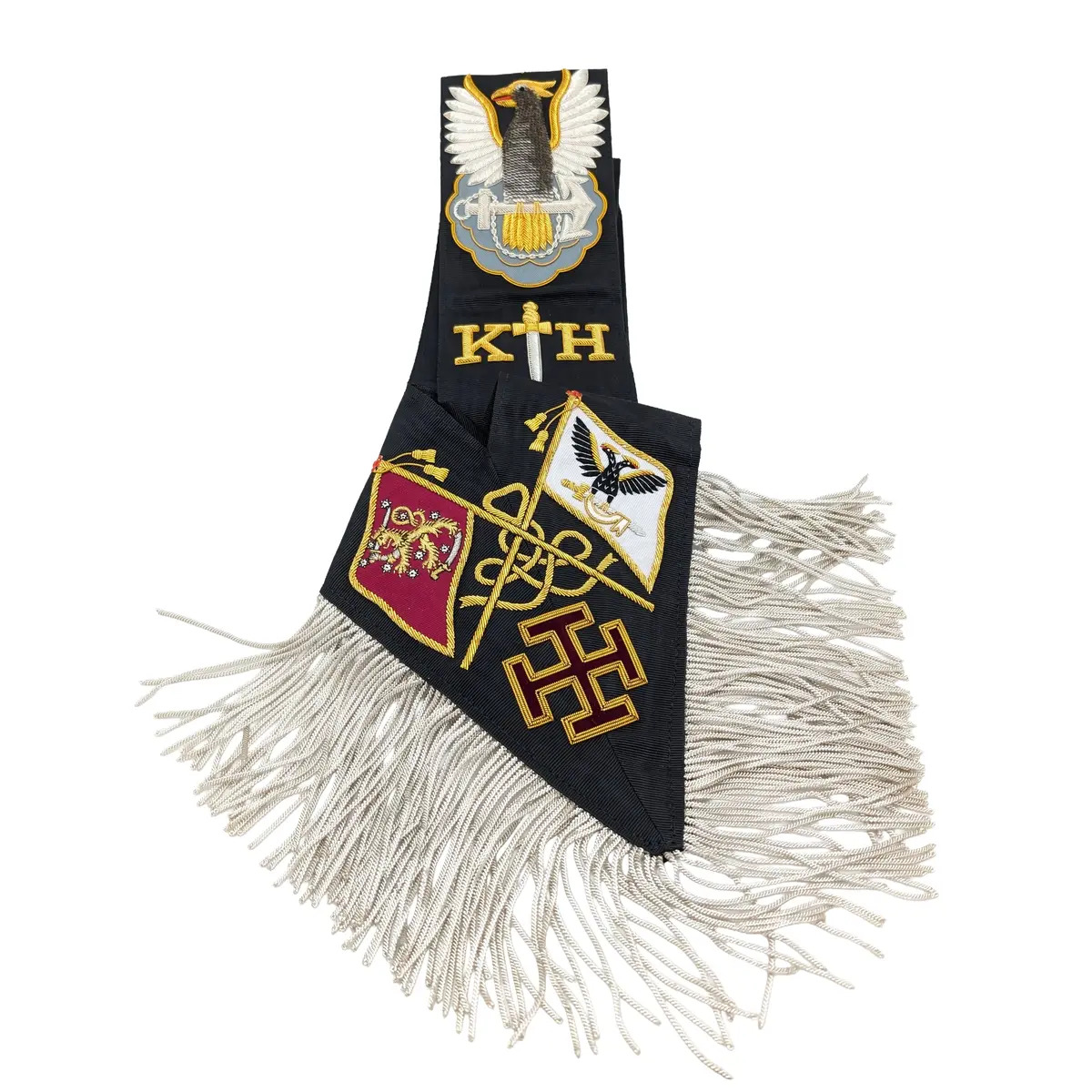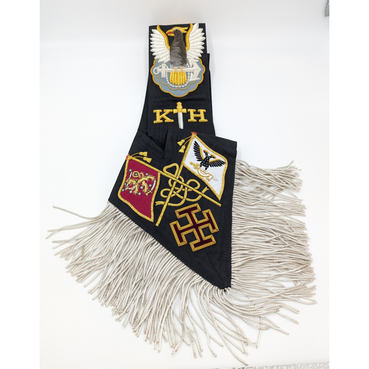 This is a beautifully hand-embroidered Rose Croix 30th Degree Sash.