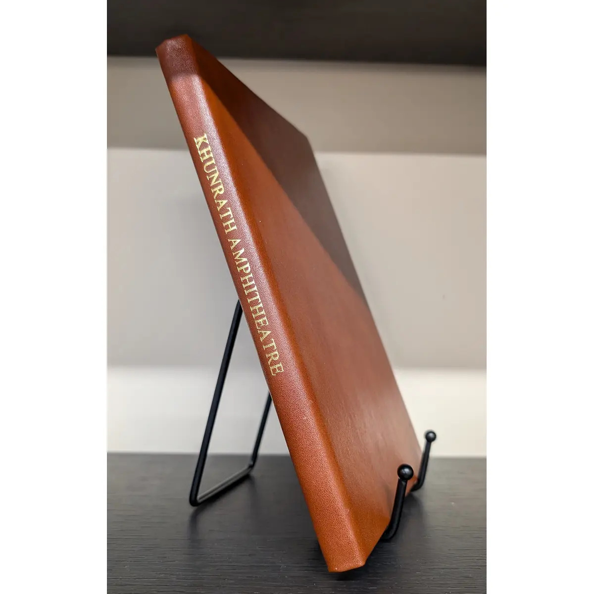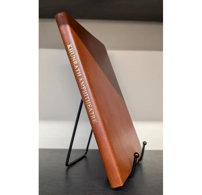 "Khunrath's 'Amphitheatre of Eternal Wisdom' published in its best known form in 1609, had a profound and important part in the alchemical and hermetic traditions in the opening decades of the 17th century, and had some influence on the development of the Rosicrucian movement. It is famous for its series of large engravings, which contain many of the elements later woven into the symbolic plates illustrating the works of Maier, Mylius, and other 'Rosicrucian' writers. This edition provides for the first time a translation (by Patricia Tahil) of the considerable amount of text contained on these plates, together with extensive commentaries on these engravings, including material by J.B. Craven, Stanislas de Guaita, Papus and Johan Arndt." (Adam McLean) This volume is typical of the mid-range issues of this work: it has plain light brown endpapers, is printed on a buff colour stock, has a mid-range number in the sequence of limitation, and the binding is a brown patterned faux leather with a plain spine.